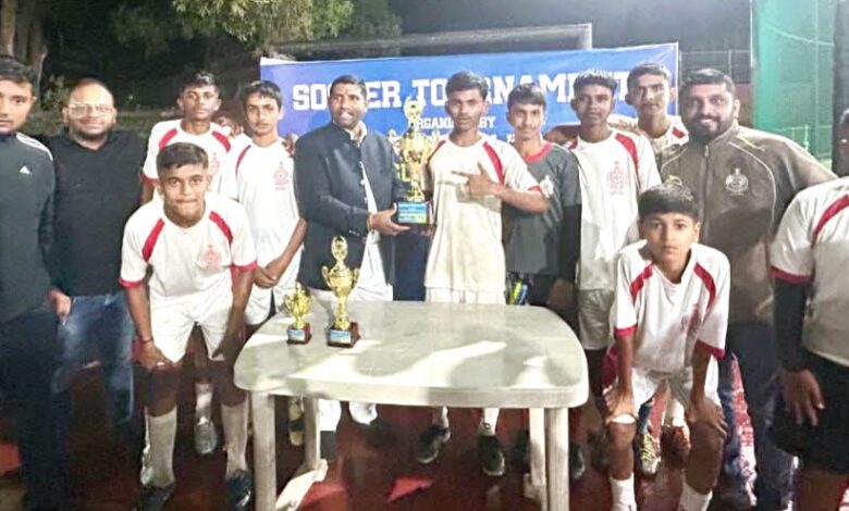 साई स्पोर्ट्स अकॅडमी खानापूरतर्फे नुकत्याच आयोजित आंतरशालेय फुटबॉल स्पर्धा -2025 मध्ये जिल्ह्यातील 10 शालेय संघांनी भाग घेतला होता. ज्यामध्ये बेळगाव कॅन्टोन्मेंट बोर्ड इंग्लिश मीडियम हायस्कूल संघाने संपूर्ण स्पर्धेत अपवादात्मक कौशल्य, सांघिक खेळ आणि खिलाडूवृत्तीचे प्रदर्शन घडवत विजेतेपद मिळविले. स्पर्धेतील आपल्या पहिल्या सामन्यात कॅन्टोन्मेंट बोर्ड हायस्कूल संघाने प्रतिस्पर्धी भातकांडे स्कूल संघावर 8 -0 असा एकतर्फी विजय मिळवला. दुसऱ्या आणि तिसऱ्या सामन्यात कॅन्टोन्मेंट बोर्ड स्कूल संघाने प्रतिस्पर्धी अनुक्रमे मराठा मंडळ स्कूल खानापूर संघाला 4 -0 अशा गोल फरकाने आणि साई अकॅडमी स्कूल संघाला 9 -0 अशा गोल फरकाने पराभूत केले.