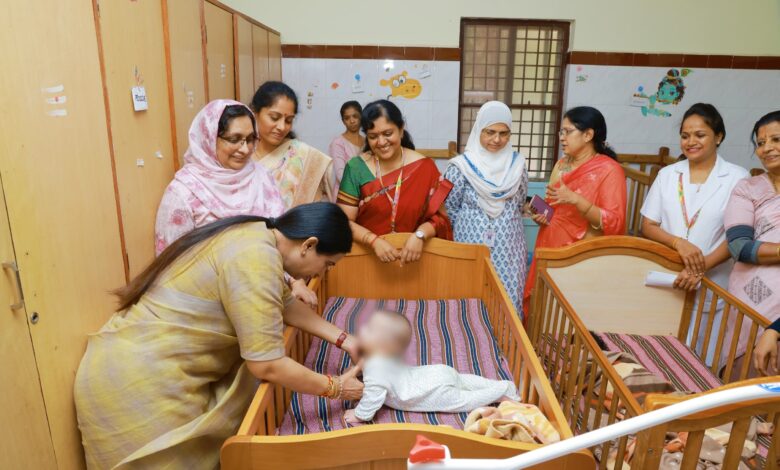 सरकारी अर्भकांना भेट देणाऱ्या मंत्र्यांनी बाळांची काळजी घेतली सहा वर्षाखालील 46 मुले आहेत. मुलाच्या निरोगी विकासासाठी अर्भकांची चांगली काळजी घेणे आवश्यक असल्याचे सांगितले. मंत्री लक्ष्मी हेब्बाळकर यांनी मुलांच्या कर्मचार्यांच्या कामगिरीचे कौतुक केले.त्याच वेळी त्याने हनुवटी उचलून रडू लागले डॉ. शमला इक्बाल, या विभागाच्या सचिव, भवि निशल, विशेष संयुक्तसंचालक पुष्पा रायर आणि उपसंचालक सुमंगला मालपुर उपस्थित होते.