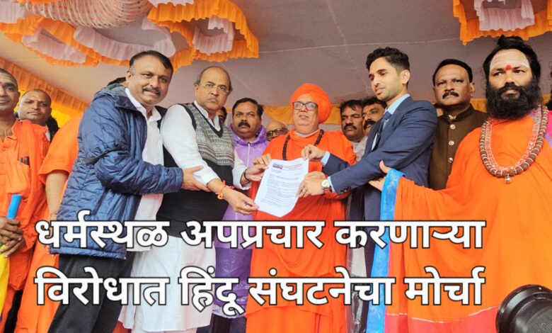 बेलगाम प्राईड / गेल्या एक महिन्यापासून हिंदू धार्मिक तीर्थस्थान धर्मस्थळाविषयी निराधार आरोप करून खोटा प्रचार करून धर्मस्थळ नाव कलंकित करण्याच्या घटना घडत आहेत. याचा निषेध नोंदवण्यासाठी मंगळवारी समस्त हिंदू समाजाच्या वतीने जिल्हाधिकारी कार्यालयावर भव्य मोर्चा काढण्यात आला.