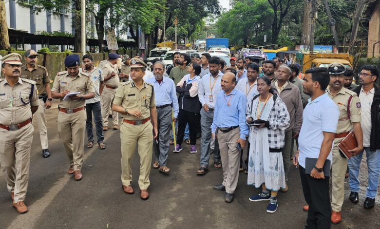 गणेशोत्सव मिरवणुक मार्गाची पोलीस , महापालिका आयुक्तांकडून पाहणी