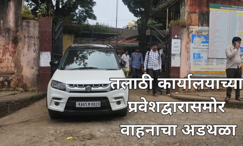 बेलगाम प्राईड /बेळगाव तलाठी कार्यालयाच्या मुख्य प्रवेशद्वारासमोर चार चाकी वाहन लावून कार्यालयात येणाऱ्या जाणाऱ्या नागरिकांना अडथळा निर्माण करण्याचा प्रकार एका खाजगी व्यक्तीने केला आहे. ईश्वर शेट्टी नामक या व्यक्तीने तलाठी कार्यालयाच्या प्रवेशद्वारा समोर दिवसभर वाहन मधोमध पार्किंग केल्यामुळे तलाठी कार्यालयात कामासाठी येणाऱ्या नागरिकांना एक प्रकारचा अडथळा निर्माण केला आहे.
