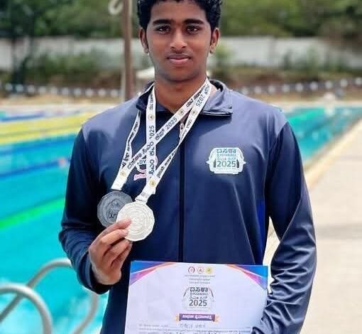 म्हैसूर येथील चामुंडी विहार अॅक्वाटिक कॉम्प्लेक्स स्विमिंग पूल येथे 22 ते दि. 25 सप्टेंबर दरम्यान दसरा सीएम कप 2025 राज्यस्तरीय जलतरण स्पर्धा यशस्वीरित्या पार पडली. या स्पर्धेत बेळगावच्या दर्शन वरूर याने रौप्य आणि कांस्य पदकाची कमाई केली. दर्शन हा आपले जलतरण प्रशिक्षक उमेश कलघटगी, अक्षय शेरेगर, अजिंक्य मेंडके, नितीश कुडुचकर, गोवर्धन काकतकर आणि इम्रान उचगावकर यांच्या मार्गदर्शनाखाली केएलईच्या सुवर्ण जेएनएमसी ऑलिंपिक आकाराच्या स्विमिंग पूल येथे पोहण्याचा सराव करतो. त्याला आई-वडिलांसह डॉ. प्रभाकर कोरे (अध्यक्ष, केएलई सोसायटी), जयंत हुंबरवाडी (अध्यक्ष, जयभारत फाउंडेशन), अविनाश पोतदार, श्रीमती मानीक कपाडिया, श्रीमती लता कित्तूर, सुधीर कुसाणे, प्रसाद तेंडोलकर आदींचा पाठिंबा आणि प्रोत्साहन लाभत आहे.