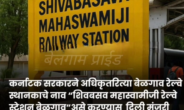 बेलगाम प्राईड /कर्नाटक सरकारने अधिकृतरित्या बेळगाव रेल्वे स्थानकाचे नाव “शिवबसव महास्वामीजी रेल्वे स्टेशन बेळगाव”असे करण्यास मंजुरी दिली आहे. राज्य शासनाचा आदेश ५ नोव्हेंबर २०२५* रोजी जारी झाला असून ही प्रस्तावना आता केंद्र सरकारच्या गृहमंत्रालयाकडे अंतिम मंजुरी व अधिसूचनेसाठी पाठविण्यात आली आहे.