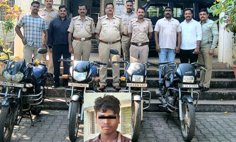 त्यानंतर पोलिसांनी त्याच्या जवळील हिरोहोंडा स्प्लेंडर प्लस क्र. केए 22 ईके 4078 किंमत 45,000 रुपये, हिरो होंडा एचएफ डिलक्स क्र. केए 25 ईएम 8053 किंमत 75,000 रु., बजाज डिस्कव्हर क्र. केए 26 एल 7735 किंमत 75,000 रु. आणि हिरो स्प्लेंडर प्लस क्र. केए 24 क्यू 5968 किंमत 75,000 रुपये अशा एकूण चार चोरी केलेल्या मोटरसायकली जप्त केल्या.