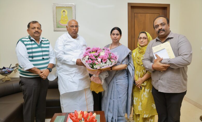 एआयसीसी अध्यक्ष मल्लिकार्जुन खर्गे यांची मंत्री लक्ष्मी हेब्बाळकर यांनी घेतली भेट