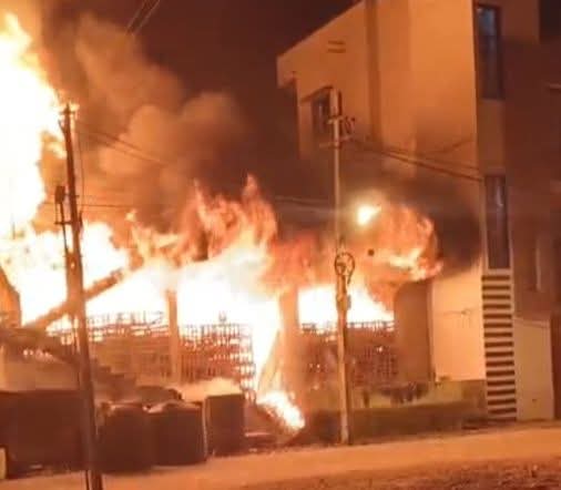 अचानक उठलेल्या ठिणगीने किराणा दुकानातील सिलिंडरला आग लागली आणि त्यातून मोठा अग्नितांडव उभा राहिला. या आगीत टी-कॉफी, फूड स्टॉलसह अनेक दुकाने क्षणार्धात जळून खाक झाली.