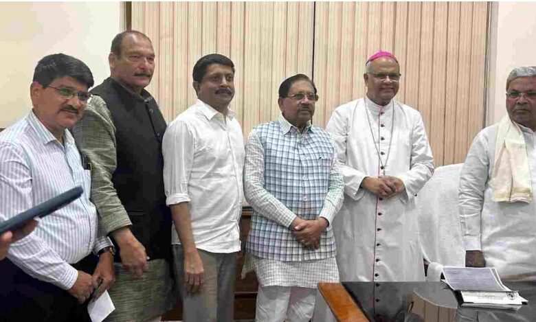 बेलगाम प्राईड : गदग जिल्ह्यातील गजेन्द्रगड येथे होली फॅमिली स्कूल परिसरात प्रस्तावित पाद्री निवासस्थान व छोटे चर्च बांधकामा वरून निर्माण झालेला वाद आता राज्याच्या वरिष्ठ नेतृत्वापर्यंत पोहोचला आहे. बेळगाव डायोसिजचे बिशप डेरेक फर्नांडिस यांनी मंगळवारी मुख्यमंत्री सिद्धरामय्या, गृहमंत्री डॉ.जी.परमेश्वर व कायदा मंत्री एच. के. पाटील यांची भेट घेऊन या प्रकरणात तातडीने हस्तक्षेप करण्याची मागणी करणारे निवेदन सादर केले. त्यांच्यासोबत आमदार आयव्हान डिसोझा, लुईस रॉड्रिग्स आणि फादर प्रमोद कुमार उपस्थित होते.