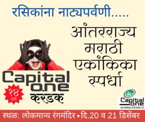 दोन दिवस चालणाऱ्या या स्पर्धे मध्ये १८ स्पर्धक संघानी सहभाग दर्शविला असून आज या पैकी ९ संघानी सादरीकरण केले आहे. शेवटच्या एकांकिका नंतर मान्यवरांचा हस्ते बक्षीस वितरण होणार आहे.