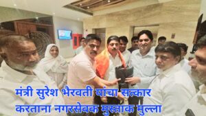 बेलगाम प्राईड / राज्याचे अर्बन डेव्हलपमेंट मंत्री सुरेश भैरवती हे बुधवारी सायंकाळी बेळगावला आले होते. यावेळी उत्तरचे आमदार असिफ राजू शेठ यांच्यासह बेळगाव पालिकेचे आयुक्त महापौर सत्ताधारी आणि विरोधी गटाचे नगरसेवक यांनी मंत्री सुरेश भैरवती यांची भेट घेतली आणि त्यांचे पुष्पगुच्छ देऊन स्वागत करण्यात आले.