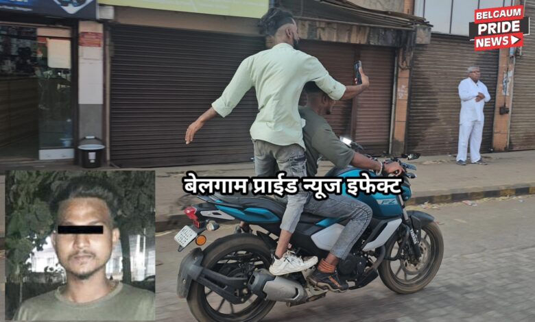 तसेच अल्पावधीत अन्नार गल्ली, पिरनवाडी कार्तिक मास्तमर्डी याचा घरचा पत्ता शोधून काढून त्याची चौकशी केली केली. त्यावेळी त्याने आपला मित्र शोएब मोहम्मदगौस किल्लेदार याच्या समवेत टिळकवाडी दुसऱ्या रेल्वे गेट जवळ काँग्रेस काँग्रेस रोडवर मोटरसायकलचे (क्र. केए 22 एचटी 9635) पुढील चाक उंचावून धोकादायक व्हीली केल्याचे कबूल केले.