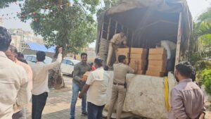 बेलगाम प्राईड / विनापरवाना सरकारी कर चुकून गोव्याहून महाराष्ट्र मध्ये जात असलेल्या दारूची वाहतूक करणारा ट्रक अडवून यातील 26 लाखाची दारू जप्त करण्यात आल्याची कारवाई माळ मारुती पोलिसांनी शनिवारी सकाळी श्रीनगर महामार्ग येथे केली .