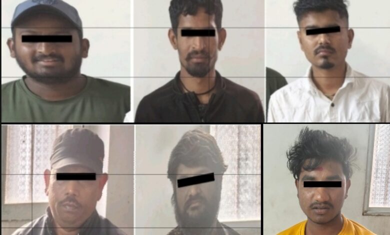 तर किरण सुरेश बजंत्री (वय 27) राहणार एपीएमसी मार्केट यार्ड कंगराई के एच.,मारुती भरमा रजाई (वय 31) रा. कंग्राळी के एच सागर नगर, शुभम कृष्णा कडीमणी (वय 27) रा. कंग्राळी के.एच. अनुप महादेव कंभीर (वय 47) रा. एपीएमसी मार्केट यार्ड कंग्राळी, विनायक मोतीराम सोनारवाडी (वय 41) रा. ज्योती नगर मार्केट यार्ड कंग्राळी, या सर्व जणांना अटक करून त्यांच्यावर गुन्हा दाखल करण्यात आला आहे.