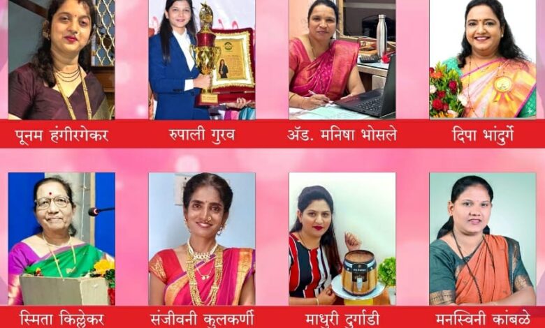 दरवर्षीप्रमाणे यंदाही विविध क्षेत्रांत आपला ठसा उमटवलेल्या आठ कर्तृत्ववान महिलांचा या सोहळ्यात सन्मान करण्यात येणार आहे. कुटुंब, व्यवसाय आणि सामाजिक जबाबदाऱ्या यांचा समतोल साधत उल्लेखनीय कार्य करणाऱ्या पूनम हंगिरगेकर, स्वप्नांचा ध्यास घेत सातत्याने प्रगती साधणाऱ्या रूपाली गुरव, शिक्षण व विधी क्षेत्रात ठसा उमटवणाऱ्या ॲड. मनिषा भोसले, बेळगावमधील टाटा समूहाकडून पुरस्कार प्राप्त उद्योजिका दीपा भांदुर्गे यांचा यामध्ये समावेश आहे.