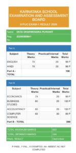 बेलगाम प्राईड/ गोगटे कॉमर्स कॉलेजची विद्यार्थिनी पियुसी द्वितीय वर्षा एकता धर्मेंद्र पुरोहित 600 पैकी 594 गुण घेऊन एकता धर्मेंद्र पुरोहित या विद्यार्थिनी यश प्राप्त केले आहे. जिल्ह्यात कॉमर्स विभागात तिसऱ्या क्रमांकावर आली आहे.