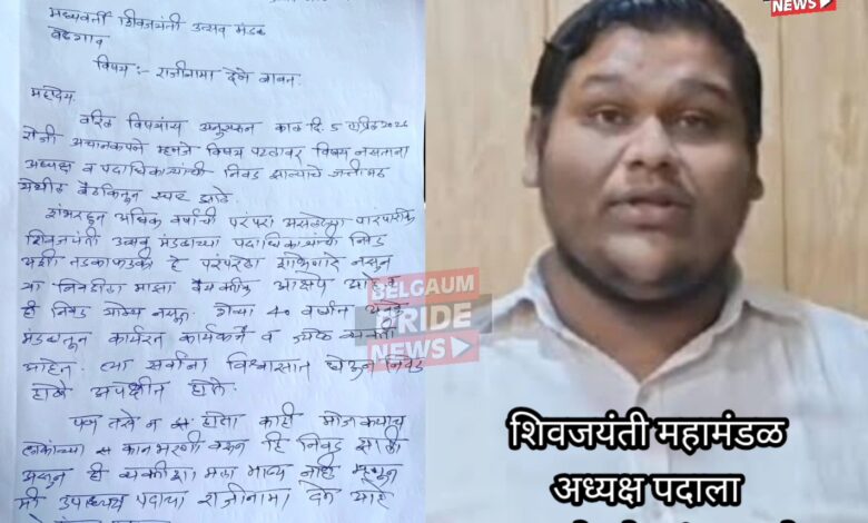 शिवजयंती महामंडळाच्या अध्यक्ष निवडीला आक्षेप शुभम शेळकेचा राजीनामा